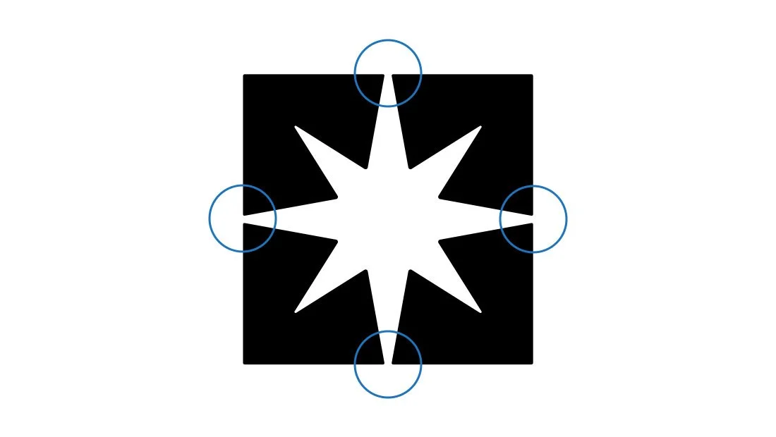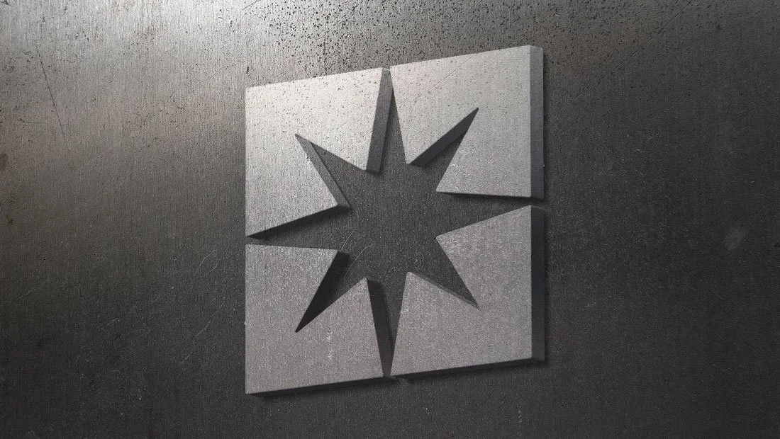 The logo design includes small vents where the top, left, right and bottom star points meet the bounding square. This means the star shape is not fully enclosed and can be easily reproduced on a CNC machine.